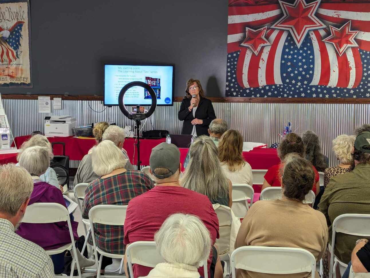 Audrey speaking to a patriot group in Traverse City Michigan.