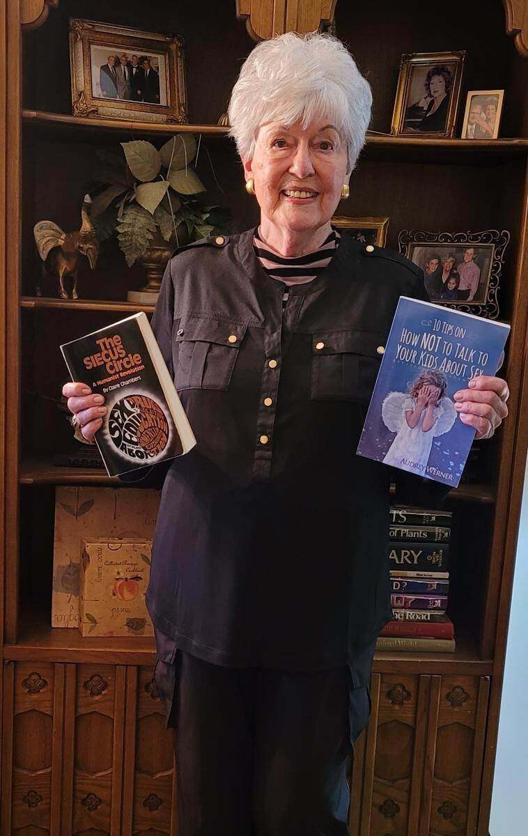 Author Claire Chambers hold her book, The SIECUS Circle as well as Audrey’s book, 10 TIPS ON HOW NOT TO TALK TO YOUR KIDS ABOUT SEX