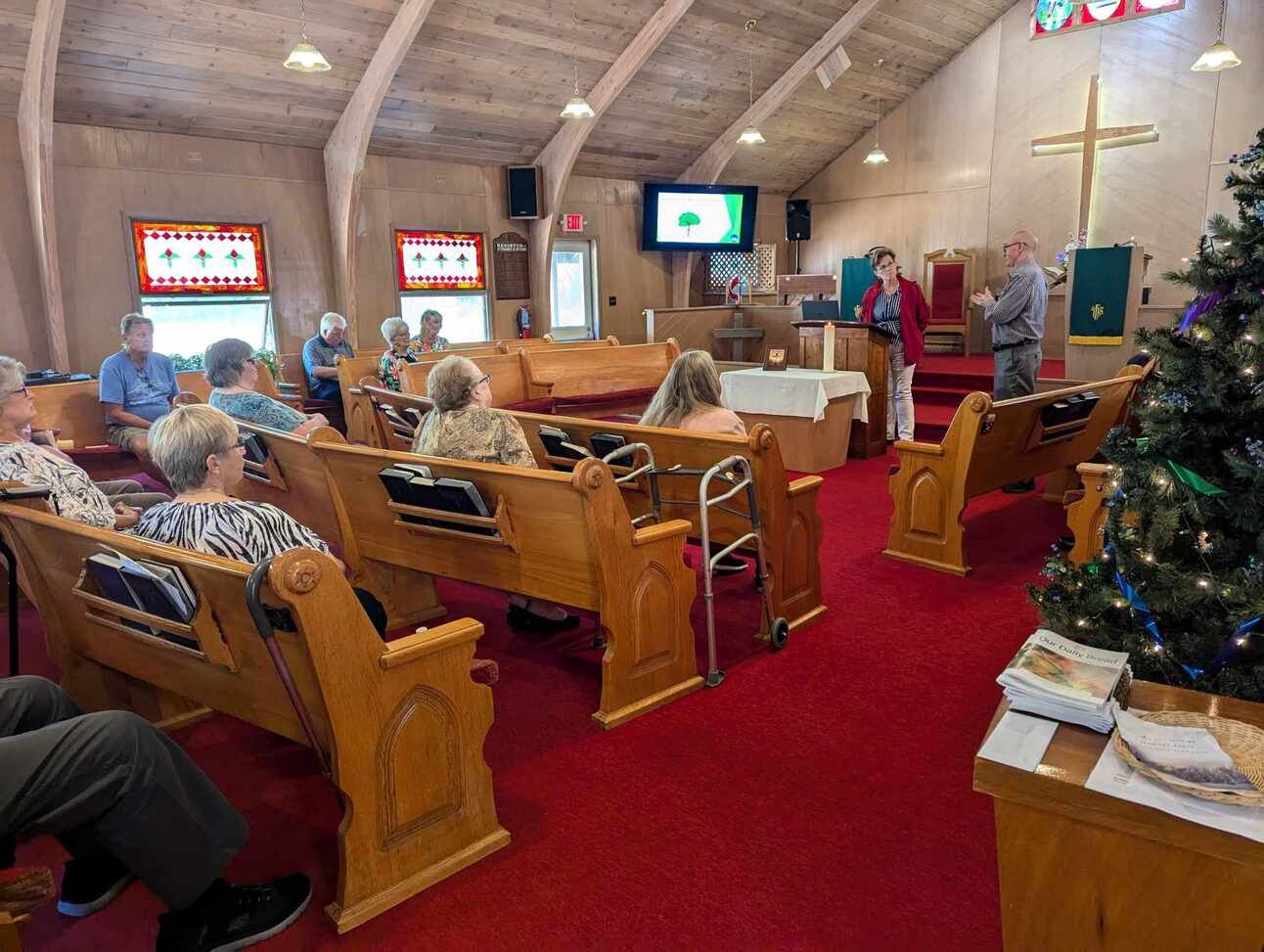 Audrey speaking at a church in the Upper Peninsula in Michigan in August.